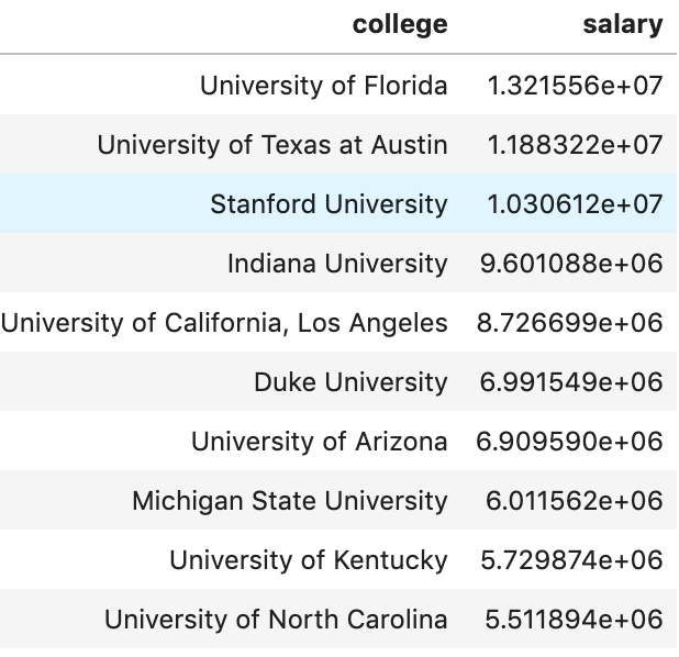 Next, I’d like to look at colleges: