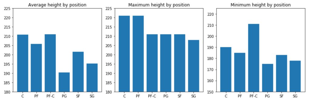 Here are a couple inquiries I investigated before feature generation, engineering, and data cleaning. This is not nearly comprehensive. There is so much to investigate so I chose a couple of questions. First: can we say with statistical significance (I’m going to start skipping that prelude) that shorter players shoot better than taller players? Yup! Better yet, we have high statistical power despite a small sample size. In other words, we can trust this finding. Next: do shooting guards shoot 2-pointers better than point guards? We fail to reject the null hypothesis (likely their averages are basically the same) but we have low power. So this finding is harder to trust. However, what we do find, with high statistical power, is that centers shoot 2-pointers better than power forwards. Next: do point guards tend to play more or less minutes than shooting guards? We can say with high power that these players tend to play very similar amounts of minutes. The next logical question is to compare small forwards and centers who, on an absolute basis, play the most and least minutes respectively. Well, as no surprise, we can say with high power that they tend to play different amounts of minutes.
