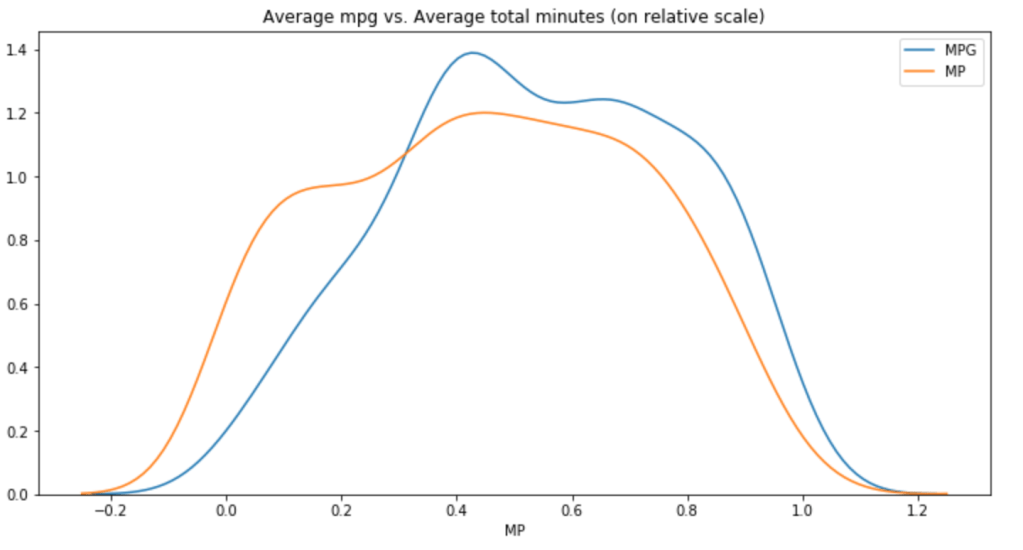 Minutes Per Game vs. Total Minutes (relative scale)
